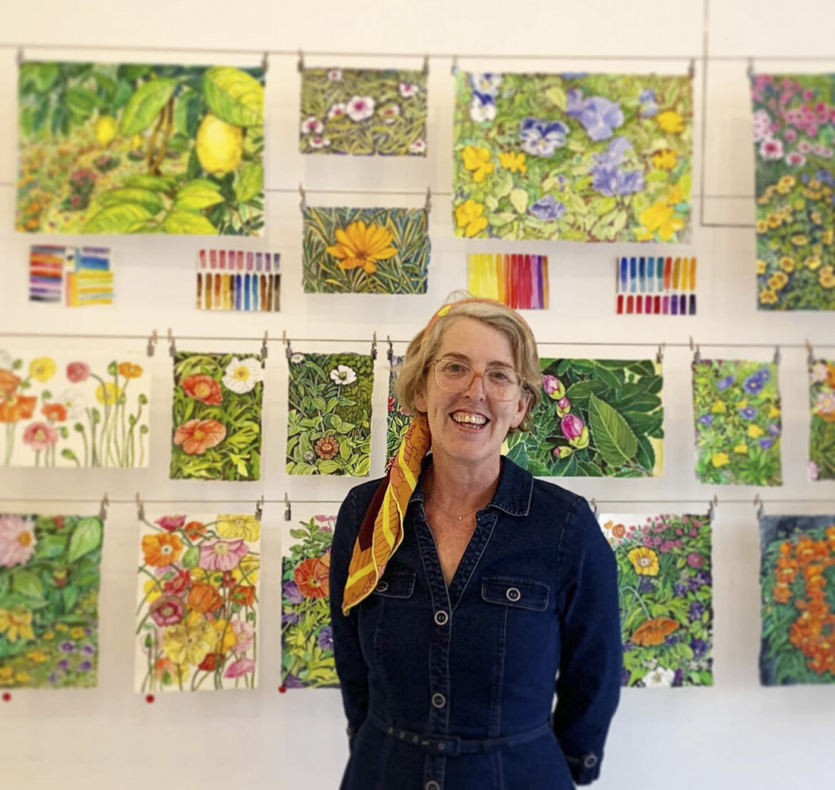 Flowers are emblematic of beauty, across culture and throughout history. This exhibition is about my painting and gardening practice. They are paintings of the flowers I grow from seed and the compositions I design in my garden beds. I have tried to stylise nature in my Petersham backyard and in my art, creating a colour allegory of my own, in paint and in the soil. A primary influence has been Marianne North, a Victorian-era oil painter and explorer who travelled the British Empire painting in situ. Her practice, like mine, was about art and the study of nature. Her gallery at Kew Gardens remains a unique example of a 19th century salon, and it has influenced how this exhibition was conceived. The colour language of the modernist garden painters Emil Nolde and Claude Monet have influenced my palette. The compositional elements and filigree styles of 16th-century French tapestries and Northern Renaissance alter pieces are referenced to imbue my flowers with drama and personality.